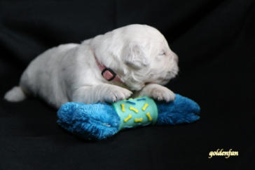 Bibi ist eine Tochter von Tia und Kingsman, sie trug im B II Wurf ein rosa Halsband - Wir sind ihren Eltern