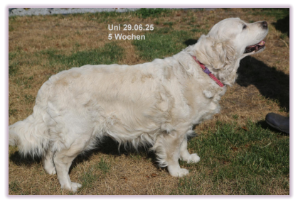 28.09. mit dem heutigen Auszug von Dori beenden wir das Tagebuch, danke liebe Uni und Jupiter für diese wundervollen Welpen, die uns sehr viel Freude bereitet haben 27.09. heute sind Dexter und auch Diamond ausgezogen, nur noch Dori bleibt bis morgen früh bei uns 25.09. so langsam wird es sehr ruhig, nur noch 3 Welpis sind bei uns, heute ist Dakoda ausgezogen, und auch er hat den Auszug toll gemacht 24.09. heute ist Dino ausgezogen, und er hat den Umzug genau wie seine beiden Geschwister prima gemeistert 23.09. heute sind Debbie und Duke ausgezogen, wir wünschen ihren Familien viel Freude mit den beiden Süßen 22.09. aktuelle Einzelfotos sowie Abschiedsfotos eingefügt 21.09. heute sind die Süßen 8 Wochen alt - neuer Gewichtseintrag eingefügt, die neuen Bilder kommen morgen, das habe ich leider nicht geschafft 20.09. die Impfung gerade haben alle ohne einen Mucks überstanden, der Tierarzt war super zufrieden mit den Süßen - nun haben sie noch 2 Tage die sie noch alle zusammen mit Toben und Spielen genießen können 19.09. Duke hat heute seine Familie kennengelernt und auch sofort ihr Herz erobert, er ist damit fest vergeben. Der Impftermin wurde wieder auf morgen Nachmittag geändert. 18.09. heute gab es wieder zusätzliche Kuscheleinheiten von Dakodas Frauchen. Die Abholung von Debbie haben wir lieber auf den Dienstag verschoben, so haben wir etwas mehr Zeit die Süßen nach der Impfung zu beobachten, ob sie die gut vertragen haben. 17.09. die Drybeds waren den Welpis zum Schlafen immer zu warm , deshalb habe ich die nun etwas reduziert damit sie die Möglichkeit haben, auch daneben zu liegen, das wurde sofort angenommen. Die Familie, die Duke kennenlernen wollte, hat den Besuchstermin kurzfristig auf Freitag verschoben. 16.09. den Kleinen macht es viel Freude, den Raum immer wieder neu zu dekorieren, jede Decke wird mit aller Kraft umhergezogen, echt niedlich ihren Eifer dabei zu beobachten 15.09. heute hatten sie wieder Spaß mit ihrem heißgeliebten Tunnel, der wurde einfach platt gemacht durchgeflitzt, schön zu beobachten 14.09. 7 Wochen erfreuen wir uns nun schon an Unis Kindern - neue Einzelfotos und Gewichtseinträge eingefügt weitere Bilder im Fotoalbum. Viele Kuschelhände gab es heute wieder von Dakodas, Doris und Dexters Familien. 13.09. die Kleinen haben sich auch heute wieder über viele Kuscheleinheiten von Dakodas Familie und Uschi und Ingo gefreut, sie werden jeden Tag agiler und haben mit allen viel Spaß 12.09. auch heute gab es wieder lieben Besuch von Diamonds und Dakodas Familien 11.09. heute gab es wieder Knuddeleinheiten von Dakodas Frauchen, außerdem gab es eine Rasselflasche die fanden alle super interessant 10.09. ein aufregender Tag - morgens haben wir eine Autofahrt mit ihnen unternommen, das hat allen sehr gefallen, Fotos folgen noch. Nachmittags hat Diamond seine Familie kennengelernt und er ist nun auch fest vergeben. 09.09. Mama Uni hat heute Geburtstag, deshalb wurden ihre Kleinen auch verwöhnt mit ein bisschen Leberwurst uih - das war mega lecker. 08.09. heute hat Uni eine Milchfütterung ausgelassen, das war kein Problem für die Süßen - Futter hat trotzdem geschmeckt. Pediküre war auch wieder dran, die Krallen waren wieder sehr lang. 07.09. Unis Kinder sind heute schon 6 Wochen alt - neuer Gewichtseintrag und neue Einzelfotos eingefügt. Dexters und Dakodas Familie waren zum Knuddeln da. 06.09. auch heute durften die Kleinen sich wieder über die zusätzlichen Kuschelhände der beiden Familien freuen 05.09. Dori und Dakodas Familien waren zum Knuddeln da und alle hatten viel Spaß, morgens war wieder ein Gang auf dem Dogwalk (Autobahn) dran, zuletzt lagen 5 Welpis zum Schlafen drauf, die anderen 2 fanden keinen Platz mehr und mußten davor schlafen 04.09. heute waren wir sehr stolz auf die Kleinen und Großen, wir hatten eine Familie zu Besuch, deren 5 jährige Tochter gebissen wurde und sie verständlicherweise ihr Vertrauen in Hunden vollständig verloren hatte, ich hatte erst einen Welpen alleine draußen nach anfänglicher Angst wurde es immer besser, sie brachte Gras als Futter (Donats ) und zuletzt traute sie sich sogar ihn zu streicheln. Also ich den Welpen wieder zu seinen Geschwistern gebracht hatte, konnte sie sich kaum trennen von den 7 Süßen - die Großen waren total artig und lagen ruhig in Sichtweite. Es ist schön, dass wir ein wenig helfen konnten. 03.09. ein aufregender Tag für die Süßen, morgens mußten sie schwer schuften fegen, schaufeln und am späten Nachmittag durften sie kurz draußen im Auslauf toben, das hat allen sehr gefallen, Dakodas Frauchen hat sie draußen bekuschelt- Fotos ins Album eingefügt 02.09. für Duke war heute eine Familie zu Besuch, bevor sie zu/absagen werden sie es noch mal genau überdenken, ob ein Welpe zu ihnen paßt, so ist es richtig, spontan sollte man sich nicht entscheiden. 01.09. heute hat Dori ihre liebe Familie kennengelernt und alle war hin und weg von den Süßen, auch sie ist nun fest vergeben. Leider hatte Diamonds zukünftiges Frauchen einen Unfall und durch die Verletzungen können sie leider keinen Welpen aufziehen. Wir wünschen gute Besserung und hoffen sehr, dass Diamond und Duke bald auch eine liebe Familie finden. 31.08. schon wieder eine Woche vergangen - 5 Wochen sind die Süßen heute schon - neuer Gewichtseintrag und neue Einzelbilder eingefügt, weitere wie immer im Album. Dino hat seine Familie kennengelernt und ihre Herzen erobert, er ist damit auch fest vergeben. Dakodas Familie war zum Kuscheln da. 30.08. völlig relaxt haben die Kleinen ihre erste Impfung und das Chippen überstanden - es gab nicht einen Fiep - echt toll, unser Tierarzt hat alle auch durchgecheckt und festgestellt, dass alle kerngesund sind, gleich danach haben sie uns gezeigt wie fit sie sind - die Zeit des Breis sind auch schon vorbei richtiges Futter ist nun mmmmmh 29.08. Heute gab es wieder liebe Kuschelhände von Dakodas Frauchen und sie durften die Welpenautobahn erkunden, leider