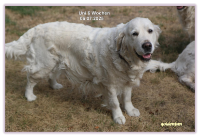 28.09. mit dem heutigen Auszug von Dori beenden wir das Tagebuch, danke liebe Uni und Jupiter für diese wundervollen Welpen, die uns sehr viel Freude bereitet haben 27.09. heute sind Dexter und auch Diamond ausgezogen, nur noch Dori bleibt bis morgen früh bei uns 25.09. so langsam wird es sehr ruhig, nur noch 3 Welpis sind bei uns, heute ist Dakoda ausgezogen, und auch er hat den Auszug toll gemacht 24.09. heute ist Dino ausgezogen, und er hat den Umzug genau wie seine beiden Geschwister prima gemeistert 23.09. heute sind Debbie und Duke ausgezogen, wir wünschen ihren Familien viel Freude mit den beiden Süßen 22.09. aktuelle Einzelfotos sowie Abschiedsfotos eingefügt 21.09. heute sind die Süßen 8 Wochen alt - neuer Gewichtseintrag eingefügt, die neuen Bilder kommen morgen, das habe ich leider nicht geschafft 20.09. die Impfung gerade haben alle ohne einen Mucks überstanden, der Tierarzt war super zufrieden mit den Süßen - nun haben sie noch 2 Tage die sie noch alle zusammen mit Toben und Spielen genießen können 19.09. Duke hat heute seine Familie kennengelernt und auch sofort ihr Herz erobert, er ist damit fest vergeben. Der Impftermin wurde wieder auf morgen Nachmittag geändert. 18.09. heute gab es wieder zusätzliche Kuscheleinheiten von Dakodas Frauchen. Die Abholung von Debbie haben wir lieber auf den Dienstag verschoben, so haben wir etwas mehr Zeit die Süßen nach der Impfung zu beobachten, ob sie die gut vertragen haben. 17.09. die Drybeds waren den Welpis zum Schlafen immer zu warm , deshalb habe ich die nun etwas reduziert damit sie die Möglichkeit haben, auch daneben zu liegen, das wurde sofort angenommen. Die Familie, die Duke kennenlernen wollte, hat den Besuchstermin kurzfristig auf Freitag verschoben. 16.09. den Kleinen macht es viel Freude, den Raum immer wieder neu zu dekorieren, jede Decke wird mit aller Kraft umhergezogen, echt niedlich ihren Eifer dabei zu beobachten 15.09. heute hatten sie wieder Spaß mit ihrem heißgeliebten Tunnel, der wurde einfach platt gemacht durchgeflitzt, schön zu beobachten 14.09. 7 Wochen erfreuen wir uns nun schon an Unis Kindern - neue Einzelfotos und Gewichtseinträge eingefügt weitere Bilder im Fotoalbum. Viele Kuschelhände gab es heute wieder von Dakodas, Doris und Dexters Familien. 13.09. die Kleinen haben sich auch heute wieder über viele Kuscheleinheiten von Dakodas Familie und Uschi und Ingo gefreut, sie werden jeden Tag agiler und haben mit allen viel Spaß 12.09. auch heute gab es wieder lieben Besuch von Diamonds und Dakodas Familien 11.09. heute gab es wieder Knuddeleinheiten von Dakodas Frauchen, außerdem gab es eine Rasselflasche die fanden alle super interessant 10.09. ein aufregender Tag - morgens haben wir eine Autofahrt mit ihnen unternommen, das hat allen sehr gefallen, Fotos folgen noch. Nachmittags hat Diamond seine Familie kennengelernt und er ist nun auch fest vergeben. 09.09. Mama Uni hat heute Geburtstag, deshalb wurden ihre Kleinen auch verwöhnt mit ein bisschen Leberwurst uih - das war mega lecker. 08.09. heute hat Uni eine Milchfütterung ausgelassen, das war kein Problem für die Süßen - Futter hat trotzdem geschmeckt. Pediküre war auch wieder dran, die Krallen waren wieder sehr lang. 07.09. Unis Kinder sind heute schon 6 Wochen alt - neuer Gewichtseintrag und neue Einzelfotos eingefügt. Dexters und Dakodas Familie waren zum Knuddeln da. 06.09. auch heute durften die Kleinen sich wieder über die zusätzlichen Kuschelhände der beiden Familien freuen 05.09. Dori und Dakodas Familien waren zum Knuddeln da und alle hatten viel Spaß, morgens war wieder ein Gang auf dem Dogwalk (Autobahn) dran, zuletzt lagen 5 Welpis zum Schlafen drauf, die anderen 2 fanden keinen Platz mehr und mußten davor schlafen 04.09. heute waren wir sehr stolz auf die Kleinen und Großen, wir hatten eine Familie zu Besuch, deren 5 jährige Tochter gebissen wurde und sie verständlicherweise ihr Vertrauen in Hunden vollständig verloren hatte, ich hatte erst einen Welpen alleine draußen nach anfänglicher Angst wurde es immer besser, sie brachte Gras als Futter (Donats ) und zuletzt traute sie sich sogar ihn zu streicheln. Also ich den Welpen wieder zu seinen Geschwistern gebracht hatte, konnte sie sich kaum trennen von den 7 Süßen - die Großen waren total artig und lagen ruhig in Sichtweite. Es ist schön, dass wir ein wenig helfen konnten. 03.09. ein aufregender Tag für die Süßen, morgens mußten sie schwer schuften fegen, schaufeln und am späten Nachmittag durften sie kurz draußen im Auslauf toben, das hat allen sehr gefallen, Dakodas Frauchen hat sie draußen bekuschelt- Fotos ins Album eingefügt 02.09. für Duke war heute eine Familie zu Besuch, bevor sie zu/absagen werden sie es noch mal genau überdenken, ob ein Welpe zu ihnen paßt, so ist es richtig, spontan sollte man sich nicht entscheiden. 01.09. heute hat Dori ihre liebe Familie kennengelernt und alle war hin und weg von den Süßen, auch sie ist nun fest vergeben. Leider hatte Diamonds zukünftiges Frauchen einen Unfall und durch die Verletzungen können sie leider keinen Welpen aufziehen. Wir wünschen gute Besserung und hoffen sehr, dass Diamond und Duke bald auch eine liebe Familie finden. 31.08. schon wieder eine Woche vergangen - 5 Wochen sind die Süßen heute schon - neuer Gewichtseintrag und neue Einzelbilder eingefügt, weitere wie immer im Album. Dino hat seine Familie kennengelernt und ihre Herzen erobert, er ist damit auch fest vergeben. Dakodas Familie war zum Kuscheln da. 30.08. völlig relaxt haben die Kleinen ihre erste Impfung und das Chippen überstanden - es gab nicht einen Fiep - echt toll, unser Tierarzt hat alle auch durchgecheckt und festgestellt, dass alle kerngesund sind, gleich danach haben sie uns gezeigt wie fit sie sind - die Zeit des Breis sind auch schon vorbei richtiges Futter ist nun mmmmmh 29.08. Heute gab es wieder liebe Kuschelhände von Dakodas Frauchen und sie durften die Welpenautobahn erkunden, leider